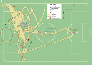 Now this is art. At the suggestion of Joe O’Dea, Thomas Schwagmeier has created an overlay of his Apollo 11 traverse diagram on a football (soccer) pitch. Spatially correct, not less complicated and still visually effective (but not very scientific). Size context is given, Lunar context is lost, however. So this may be more art than science. Designed for international audience.